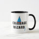 Cribbage wizard text with a wizard's hat and magic wand is a humourous design for cribbage card game players.