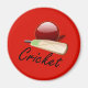Cricket bat and ball, labelled, magnet