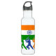 Three silhouetted Indian Cricket Players under the Indian Flag with the country name India along the side.