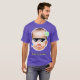 I give wanted to give this a 4 instead of a 5 because these Basic DARK T0shirts run unexpectedly SLIM or Narrow. Which is great if you do not have a potbelly, but I have a paunch. It isn't the shirt's fault that I've got a beer belly. The design and shirt itself is a quality cotton shirt. The color is more of a deep purple, but still a very pretty color. The Basic DARK T-shirts run a bit SLIMMER than the Basic Ts. The neck is a fraction narrower (or seems to be narrower) also. I'm a paunchy middle-aged woman and my neck is 12 inches (31cm) thick and the neckline fell about the same as in the photo of the man, and I had the desire to tug it a bit. So if you're a thick necked man or like loose shirts, be aware these are slimmer shirts. Once I get rid of my lockdown paunch it'll look great. The shirt washed well in cold water with no apparent bleeding. We don't have a dryer, so it hung dry. Did not shrink. Love the colors and the design. The design looks smaller on my shirt than it does on the model on-line. But still, it looks good on the shirt. The printing looks as it does on the model, just the size seems fractionally smaller. Washed garment in cold water, hung dry and design appeared unaffected.