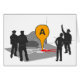 Crime Scene Map with Police and outlined Body. Design based on a very popular maps site and police crime scene markers. It has an outline of a body in white on a pavement. Around the outline are police and bystanders with one pointing up to where the body has fallen. The body is marked with a large ‘A’ marker