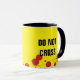 Yellow mug with two custom text fields "CRIME SCENE", "DO NOT CROSS". Blood stains.
