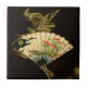 Crimped Oriental Fan with Floral Design Tile
