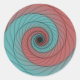A mesmerizing spiral composed of layered, petal-like forms that gently twist inward toward a hypnotic center. The design transitions seamlessly between muted teal and warm coral tones, creating a striking yet balanced contrast. Each curved layer overlaps with soft shadows, giving the piece a sculpted, almost three-dimensional appearance.