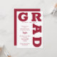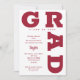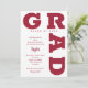 GRAD in bold crimson red lettering curves around the edges of these white background graduation party invitations. MATCHING items in our store.
