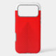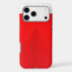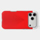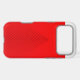 Black lines rise in layered symmetry across a red case, forming a sharp upward-pointing triangle that converges at the top. The precise spacing and bold contrast create a striking visual rhythm—Crimson Apex blends architectural geometry with modern minimalism for a sleek, commanding aesthetic.