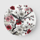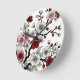 Crimson Blossom Elegance - Japanese-Inspired Flora Round Clock