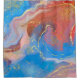 An abstract marbled alcohol ink design in a crimson, blush and blue palette, overlaid with gold accents.