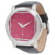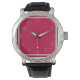 You'll love this handsome watch with a crimson and pewter-coloured face and pewter-coloured numbers.