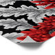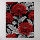 This vibrant artwork features a bold and beautiful arrangement of crimson chrysanthemums set against a dramatic black background. The intricate details of the flowers and leaves create a captivating pattern that is perfect for adding a touch of elegance to any space. This design is sure to make a statement and brighten up your home or office.