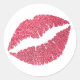Crimson Glitter Lips Print Classic Round Sticker