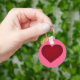 This keychain features a shapely crimson heart on a pink background. Personalise as a party favour for weddings, bridal showers, engagement parties. Also makes a cute Valentine's Day gift.