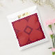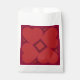 This party favour bag features four crimson hearts surrounding a central crimson diamond on a burgundy background.