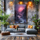 This surreal landscape artwork features a dramatic alien valley illuminated by a glowing crimson moon. Jagged rocky formations, deep shadows, and cinematic lighting create a mysterious sci-fi and fantasy atmosphere. Ideal as modern wall art for science fiction fans, gamers, and lovers of cosmic, otherworldly decor. Perfect for contemporary interiors, creative studios, and immersive spaces seeking bold, atmospheric artwork.