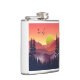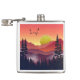 An abstract landscape of a mountain scene with a sunrise and trees in bold shades of crimson and red.