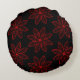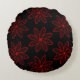 Crimson Pattern on Black Round Cushion