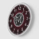 Crimson Polka Dots Modern Monogram Large Clock