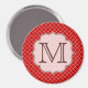Crimson Red Quarterfoil Lattice Quarter Foil Monogram Initial Personalised Custom Fabric Pattern Kitchen Magnet