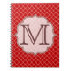 Crimson Red Quarterfoil Latti Monogram Initial Quarterfoil Lattice Quarter Foil Monogram Initial Personalised Custom Fabric Pattern Note Book