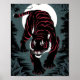 majestic black tiger adorned with striking red stripes. The creature's intense gaze and poised stance evoke a sense of power and mystery.