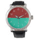 This beautiful watch features classic white numerals on a crimson and aqua background. Who says elegance has to be boring?