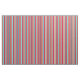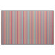 This design features stripes coloured crimson, tan, maroon, beige, and dark turquoise.