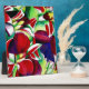 with original art design from original painting of brightly coloured crimson tropical Singapore Orchids by Sacha Grossel Art. Design from a watercolour painting of close focus red, green and blue orchid flowers, colourful and bright.