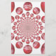This artwork features a central, spiralling vortex formed by numerous red cricket balls decreasing in size towards a vanishing point. Surrounding this dynamic core are larger, more detailed depictions of red cricket balls, showcasing their textured leather and prominent white stitching from various angles. The entire composition is set against a clean white background, emphasising the central motif and its details.