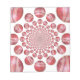 This artwork features a central, spiralling vortex formed by numerous red cricket balls decreasing in size towards a vanishing point. Surrounding this dynamic core are larger, more detailed depictions of red cricket balls, showcasing their textured leather and prominent white stitching from various angles. The entire composition is set against a clean white background, emphasising the central motif and its details.