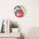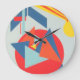 This contemporary timepiece features an abstract arrangement of blue and orange triangles. The crisp geometry and vibrant color contrast create a dynamic visual rhythm, transforming the familiar function of a clock into a graphic statement of movement and balance.