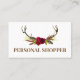 Crisp White & Boho Floral Antler Personal Shopper Business Card