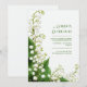 Adorn your wedding stationery with the timeless purity of this Lily of the Valley design. This piece features highly detailed, crisp white bell-shaped blossoms arching gracefully over large, vibrant emerald green leaves with realistic ribbed textures. Set against a stark, minimalist white background, the botanical arrangement climbs the side and base of the frame, providing an organic and airy feel. The clean lines and fresh color palette evoke a sense of traditional elegance and springtime renewal, perfect for a sophisticated celebration. This botanical layout is a premier choice for a classic spring wedding or a minimalist garden ceremony. The clean white and green color story makes it an excellent choice for a refined bridal shower, a chic engagement brunch, or a sophisticated morning wedding. It pairs beautifully with gold foil accents, vellum overlays, or forest green envelopes, fitting a traditional romantic or modern organic aesthetic.