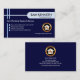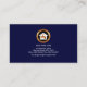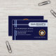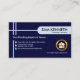 Underneath this, the vertical blue pipe line with water drop buttons houses the business name and contact details. At the base of the card is a gold home plumbing logo you can use with a slogan caption to publicize your services underneath.