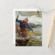 Philip R Goodwin was an American artist specialising in wildlife, the outdoors and the Old American West.  He illustrated magazine covers and commercial advertisements as well as his popular work with Jack London’s “Call of Wild”.  This image is called “Critical Moment” and depicts a fisherman ready to net his catch.