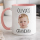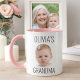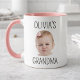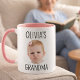 Celebrate the special bond between a grandchild and their grandpa with this heartwarming latte mug. Featuring a charming photo of little David, this mug is a perfect way to show Grandpa how much he is loved. The simple, elegant black text complements the baby's joyful expression, making it a delightful addition to any morning routine or coffee break. This mug is sure to bring a smile to Grandpa's face every time he uses it, reminding him of precious moments with his favourite little one.