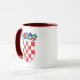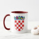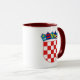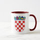 The coat of arms of Croatia consists of one main shield and five smaller shields which form a crown over the main shield. The main coat of arms is a chequerboard (chequy) that consists of 13 red and 12 silver (white) fields. It's commonly known as šahovnica ("chessboard", from šah, "chess" in Croatian) or grb (literally coat of arms). The five smaller shields represent five different historical regions within Croatia.