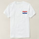 The front of this t-shirt bears a small Croatian flag with its familiar checkboard shield over red, white and blue, while the back displays a relief map of Croatia. Available on t-shirts, sweatshirts, polos, long-sleeves and more.