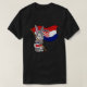 I give wanted to give this a 4 instead of a 5 because these Basic DARK T0shirts run unexpectedly SLIM or Narrow. Which is great if you do not have a potbelly, but I have a paunch. It isn't the shirt's fault that I've got a beer belly. The design and shirt itself is a quality cotton shirt. The color is more of a deep purple, but still a very pretty color. The Basic DARK T-shirts run a bit SLIMMER than the Basic Ts. The neck is a fraction narrower (or seems to be narrower) also. I'm a paunchy middle-aged woman and my neck is 12 inches (31cm) thick and the neckline fell about the same as in the photo of the man, and I had the desire to tug it a bit. So if you're a thick necked man or like loose shirts, be aware these are slimmer shirts. Once I get rid of my lockdown paunch it'll look great. The shirt washed well in cold water with no apparent bleeding. We don't have a dryer, so it hung dry. Did not shrink. Love the colors and the design. The design looks smaller on my shirt than it does on the model on-line. But still, it looks good on the shirt. The printing looks as it does on the model, just the size seems fractionally smaller. Washed garment in cold water, hung dry and design appeared unaffected.