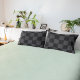 This dark pillowcase features a monochrome geometric pattern, famous Croatian chequerboard in black and grey.