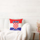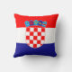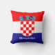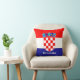 This throw pillow features the flag of Croatia with the coat of arms and customisable text in white font at the bottom.