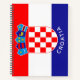 This spiral notebook features the flag of Croatia with a coat of arms and a customisable curved text "Croatia" in a white font. Personalise it with your name or text.