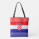 This tote bag features the flag of Croatia with a coat of arms and white horizontal stripes.