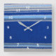 Blue striped pattern of single crochet stitch. Larger stripe is dark blue , then a light blue with a grey-blue, interspersed with white.