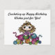 Cute, clip art picture of a gal sitting in balls of yarn with crochet hook in hand, with message "Crocheting up Happy Birthday Wishes just for You" is featured on this postcard. A great birthday greeting to send to your favourite crocheter!