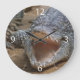 Close up of a crocodile with an open mouth lying on the yellow sand
