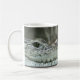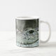 Photograph of a crocodile head and "smile" printed on both sides of mug.