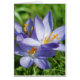 Elegant floral design. Blooming purple crocus flowers on green grass background, painting effect