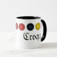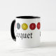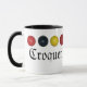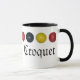 Eight colourful croquet balls wrap around this mug with the word "Croquet" printed on each side. Customisable colour, size, text and style of mug. Image copyright 2012 by Margaret E. Cmelik.