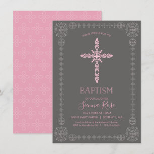Holy Cross on dusty pink watercolor Baptism Invitation