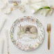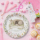 This resurrection plate deign has a watercolor cross with an empty tomb and text that says "He is Risen." Colors used include olive green, pink, cream and brown. All text is editable to meet the needs of your event.